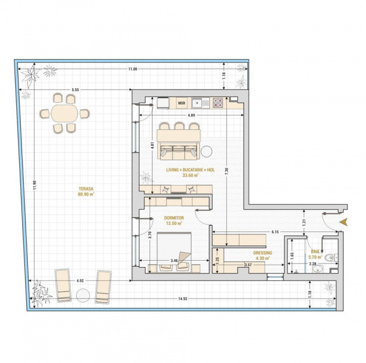 Terasa proprie, generoasă, de 81 mp, perfectă pentru relaxare și momente de liniște