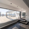 Living: 122 mp, cu o cortină de sticlă de 15 m liniari și priveliște directă spre lac, având 2 geamuri mari (7 m lungime, 2,2 m înălțime), cu acces direct pe terasa de 165 mp