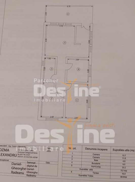 - 3 camere, 73 mp utili, TEREN 470 mp + cota indiviza din drum