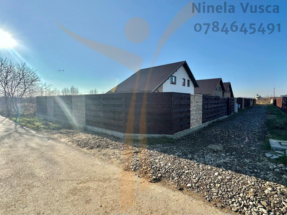 Proprietatea face parte dintr-un ansamblu rezidențial de 4 case individuale identice, cu drum privat de acces (lățime 5 m) și teren aferent de aproximativ 400 mp.