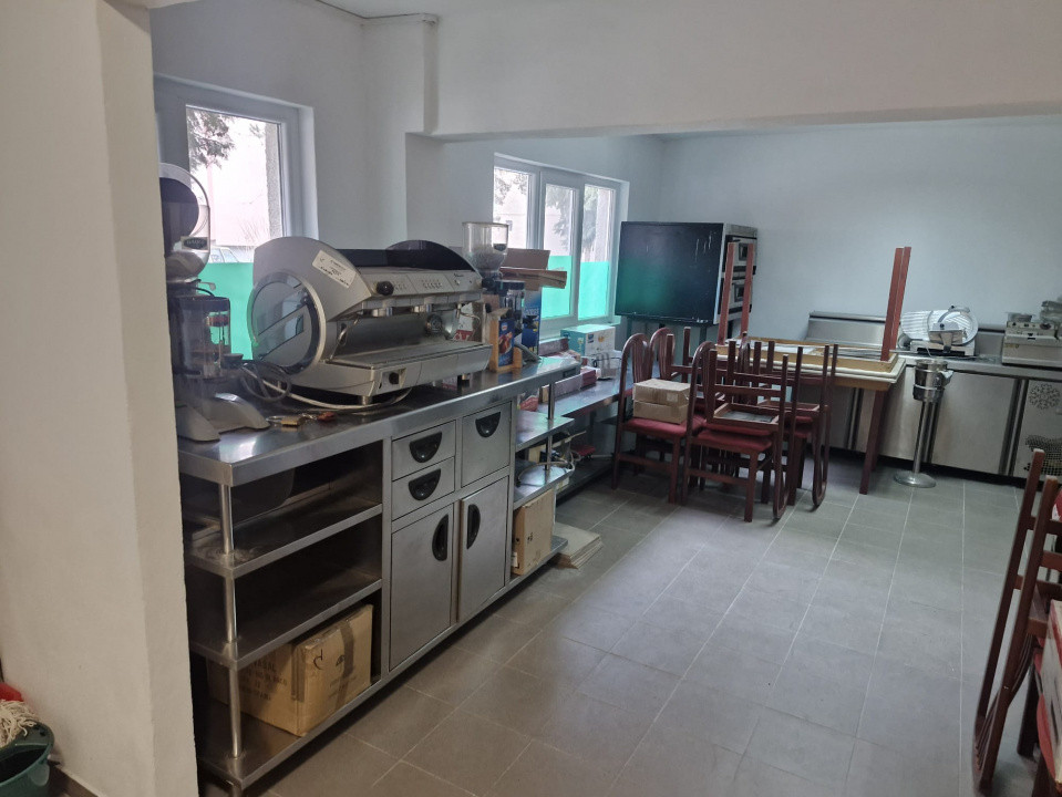 Spațiu a fost destinat unei pizzerii, este dotat cu toate accesoriile pt o pizzerie(mese,scaune ,2 cuptoare de pizza,malaxor, feliatoare mas. de cafea-toate profesionale)