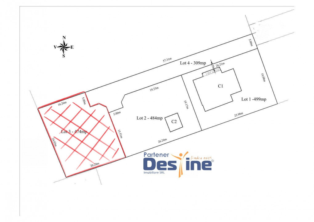 DESTINE IMOBILIARE vă recomandă un teren având o suprafață de 474 mp in CENTRUL comunei MIROSLAVA.