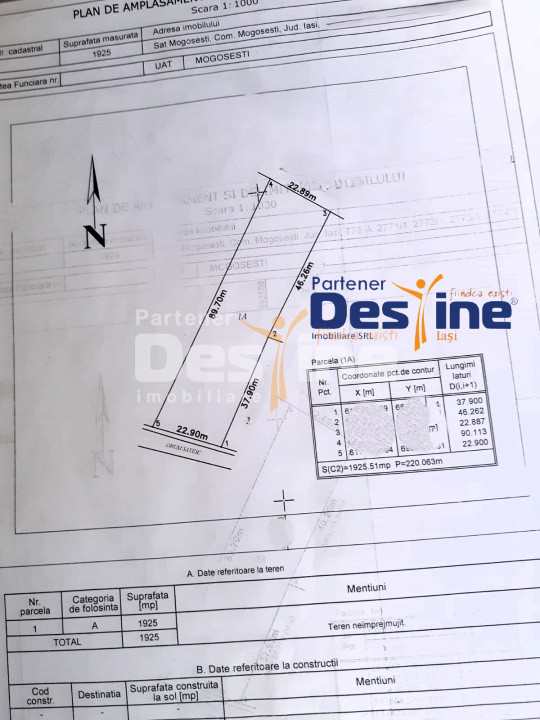 - Teren intravilan în suprafață de 1925 mp